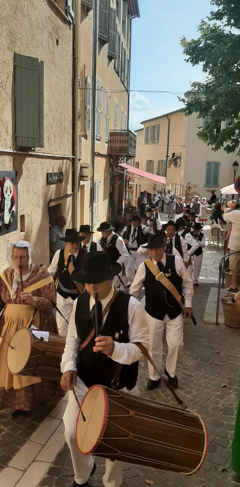 En juillet, les Bravadeurs et la chorale "Cap sur la Vie" nous ont conviés à la procession de Saint Martial, saint patron du village, honorés de la participation du Père André à partir de la Place de la Mairie.