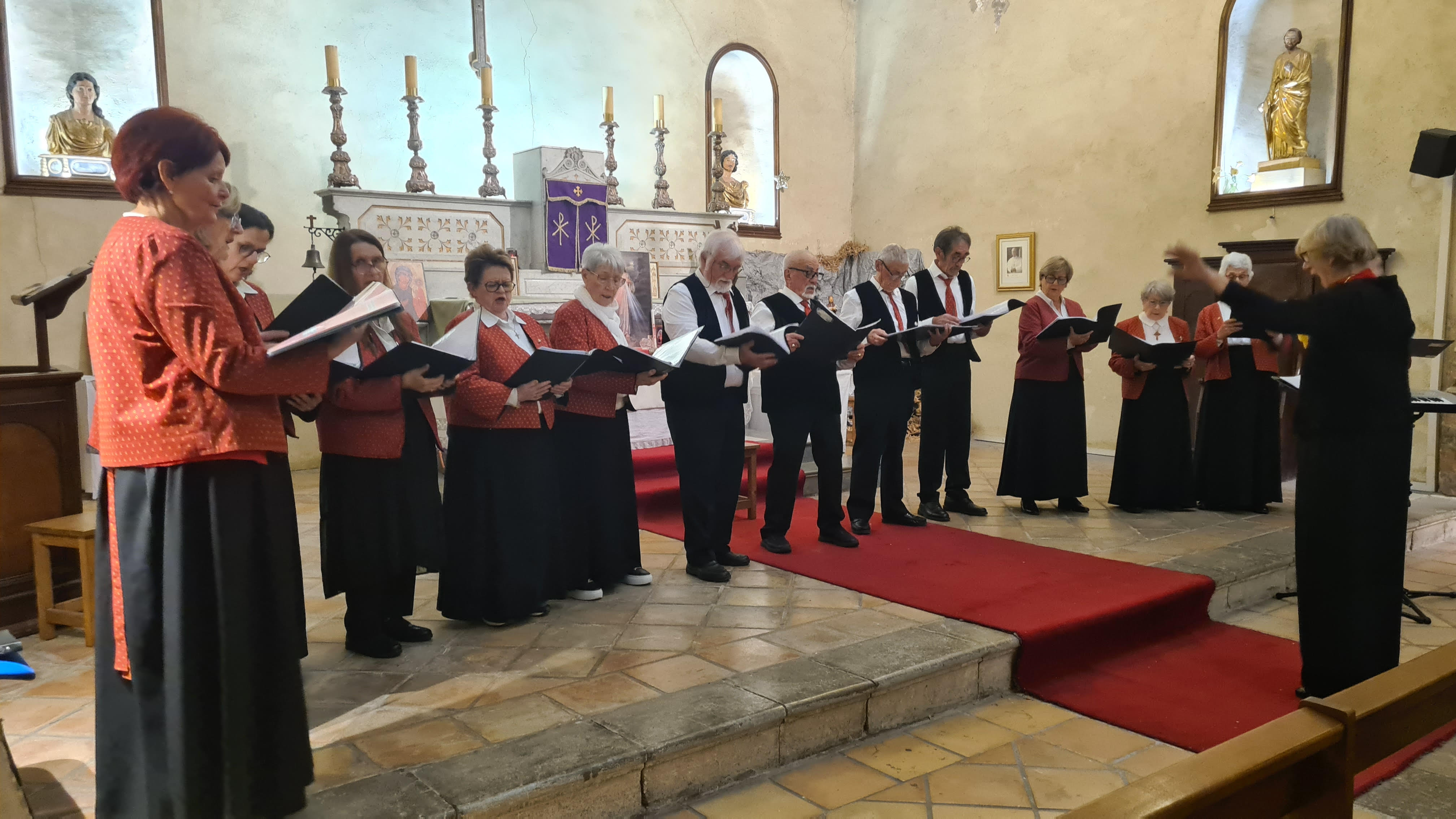 Jacqueline Franco et la chorale "Cap sur la Vie" pour le Concert de Noël dans l’Église Saint André, au bénéfice du Relais Solidarité du Pays de Fayence